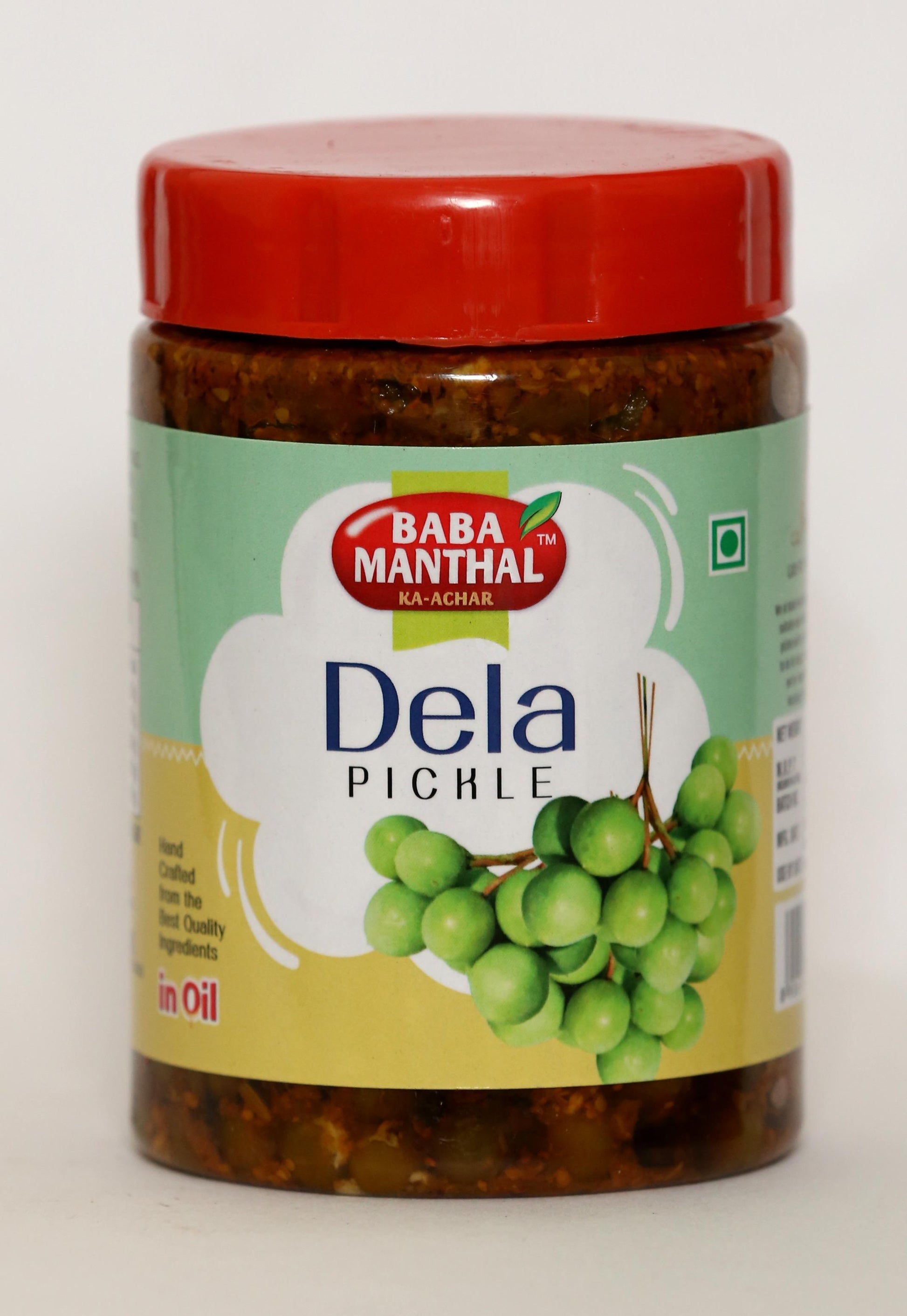 A rare and cherished recipe from the roots of Indian culinary heritage, Baba Manthal Dela Pickle is made from tender dela (wild fig or gular fruit), handpicked and preserved in aromatic spices and pure mustard oil.