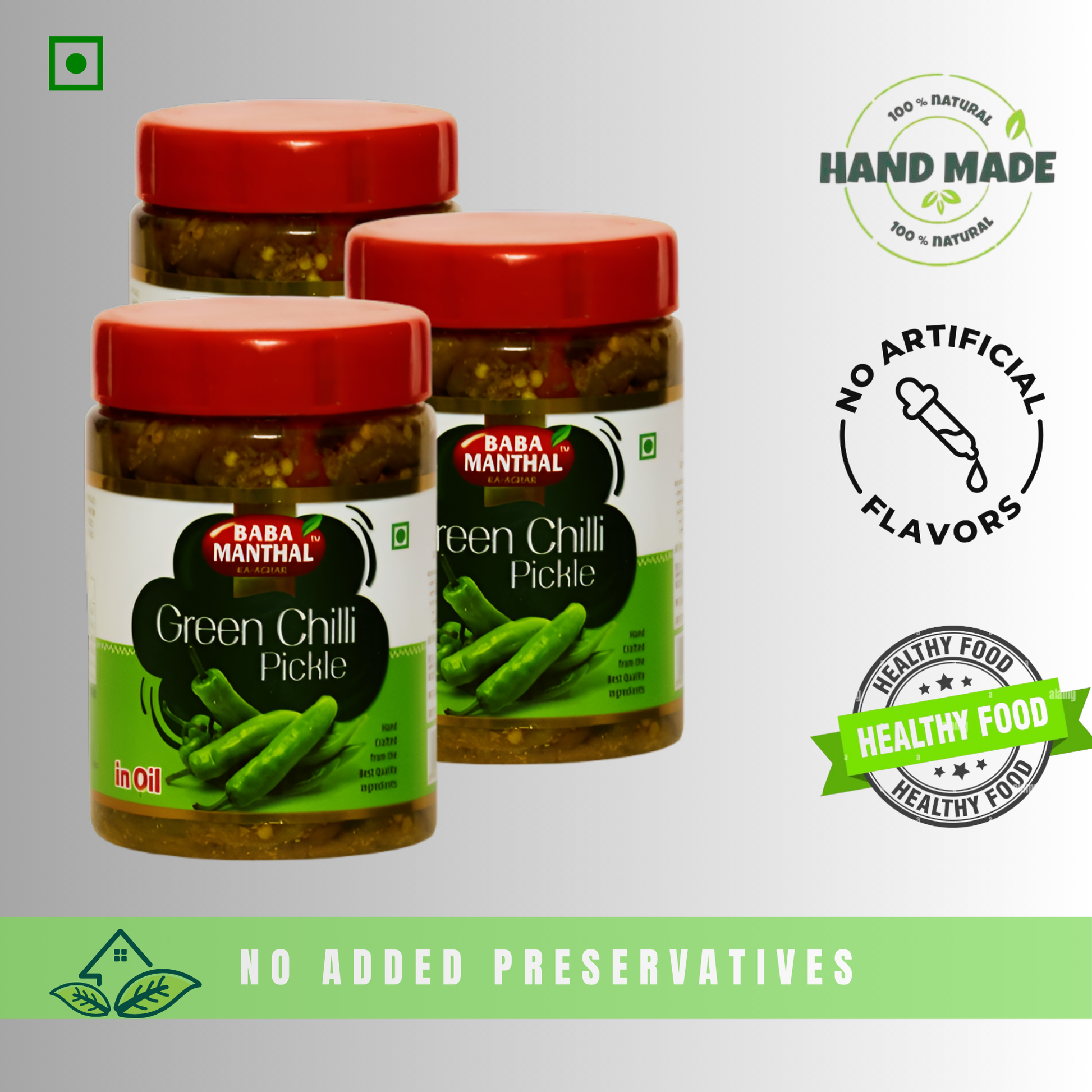 Experience the authentic taste of tradition with Baba Manthal Ka Achar – Green Chilli Pickle. Crafted from a four-generation-old recipe, this handmade pickle blends handpicked vegetables with perfectly balanced spices for that unforgettable ghar jaisa swaad. Made in small batches with love and care, it contains no preservatives or artificial additives — just real ingredients and time-tested flavor. A spoonful of nostalgia, sealed fresh for your plate